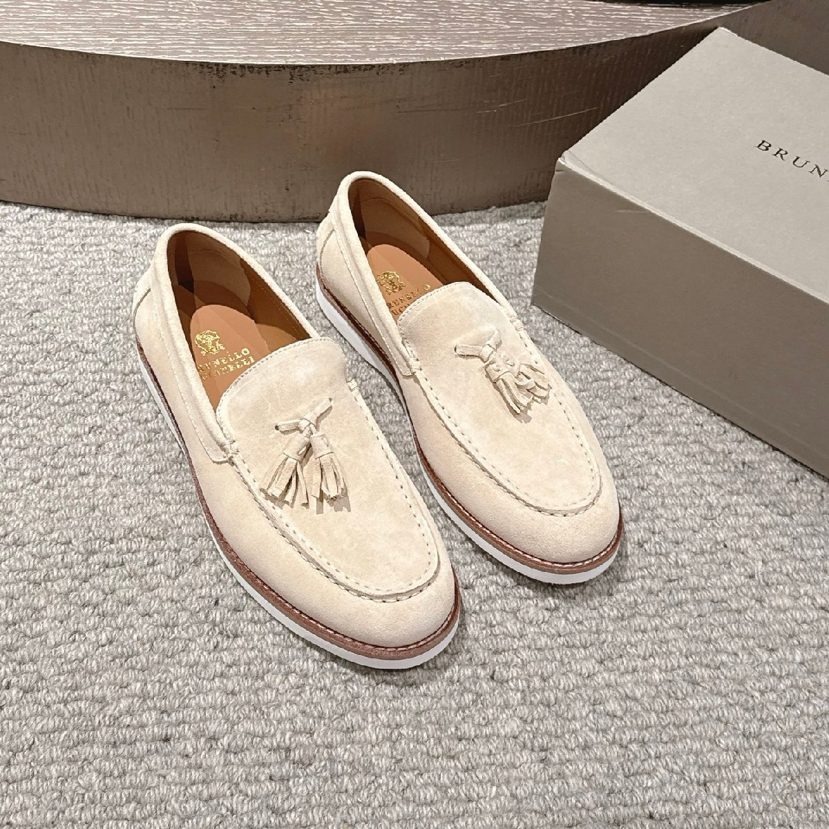 - オフホワイト25.5cm ★送料無料★ブルネロクチネリ★メンズススエード タッセル ローファー, 本革, カジュアル シューズ, ホワイトソール