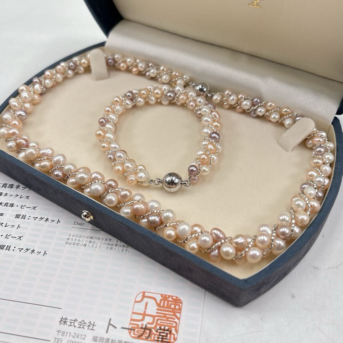 > 湖水真珠 テリ抜群!! 最高峰 マルチカラー パール ネックレス 本真珠 pearl jewelry necklace セット ブレスレット