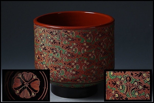 - SP1074 蒟醤 キンマ 細密 茶椀 筒茶椀 漆器 茶器