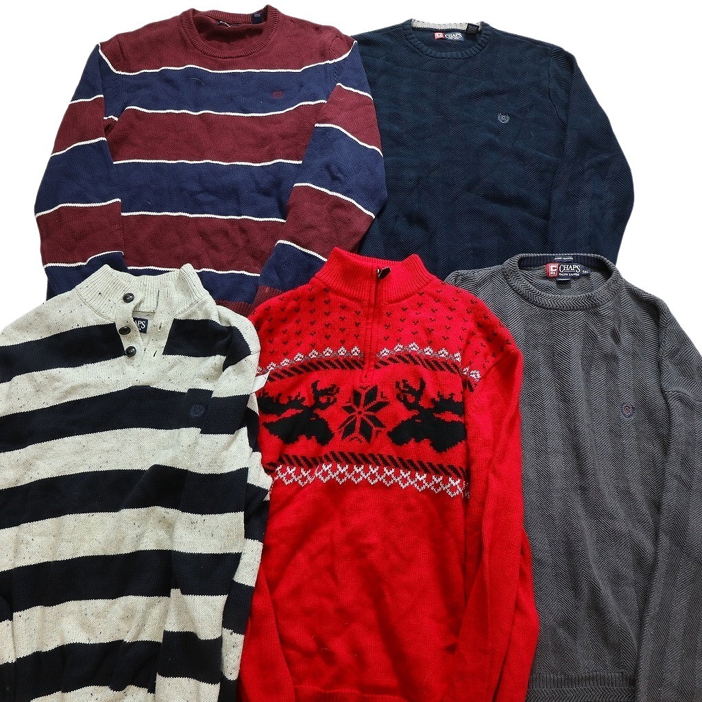 > 【訳あり】 古着卸 まとめ売り チャップス CHAPS セーター 14枚セット (メンズ ) ノルディック柄 ボーダー ヘリンボーン 中古 古着 WA3605