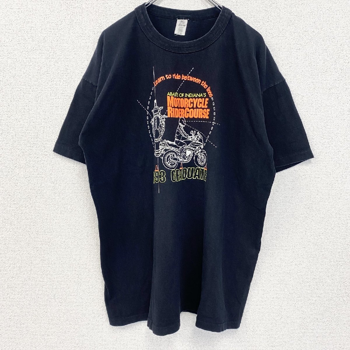 > 古着 used 半袖プリントTシャツ 90s シングルステッチ ヴィンテージ クルーネック レトロ 黒 ブラック XLサイズ