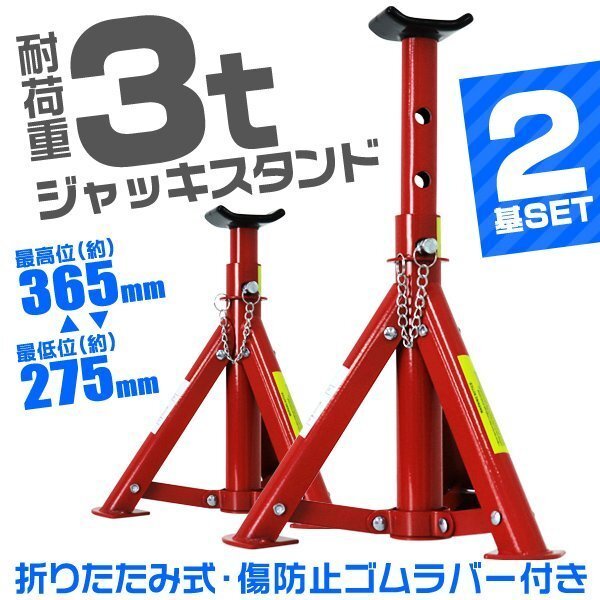 > ジャッキスタンド 2基セット 耐荷重3t 馬ジャッキ リジットラック 傷防止ゴムラバー付 高さ調整 折りたたみ タイヤ ホイール 交換 新品