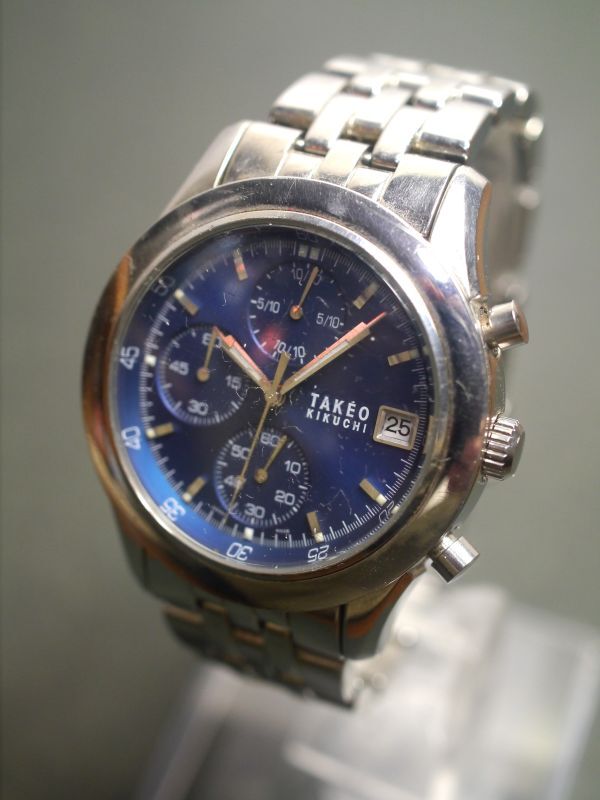 - タケオキクチ TAKEO KIKUCHI クォーツ クロノグラフ 純正ベルト 男性用 メンズ 腕時計 ac63 稼働品