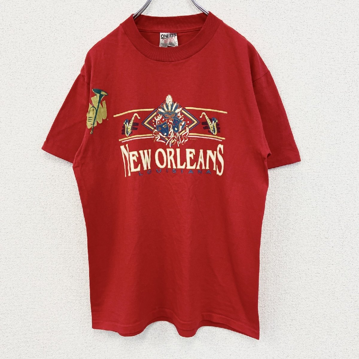 > 古着 used ONEITA 半袖プリントTシャツ 刺デザイン US製 NEW ORALEANS カジュアル レトロ Mサイズ