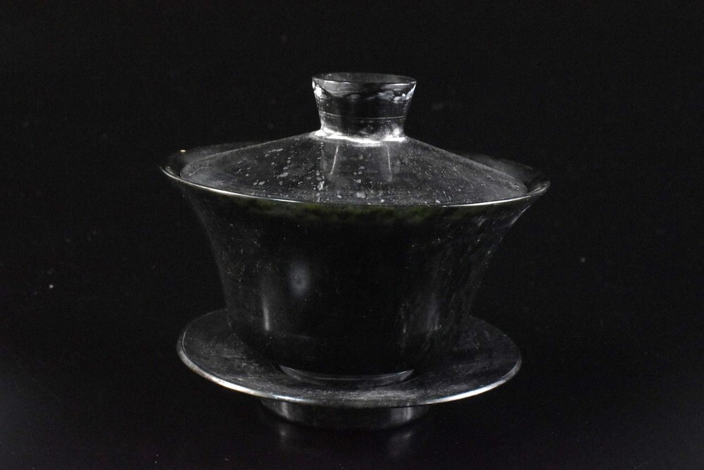- 【雲】某有名収集家放出品 玉石 蓋茶碗 古美術品(茶道具煎茶道具旧家蔵出) F8018