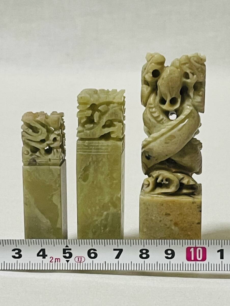 - 中国印 寿山石 天然石 双龍彫など3点 中国美術 時代物 工芸美術