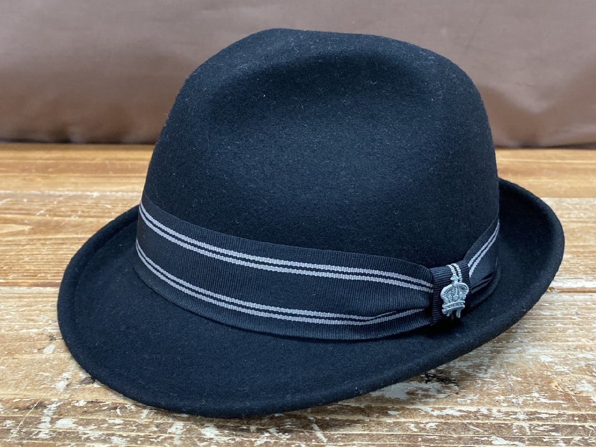 - 【N-8025】CHRISTYS’ クリスティーズ WOOL ウール ハット 帽子 ブラック系 頭周り約55cm 東京引取可【千円市場】