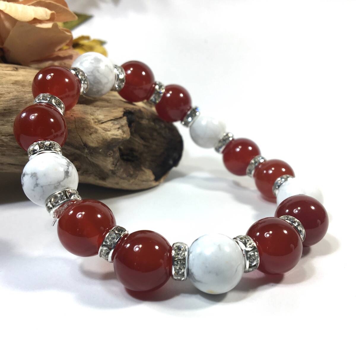 - 赤瑪瑙&ハウライト パワーストーン ブレスレット 天然石ブレス (シルバー) 12mm 幸運 開運 メンズ 男性♪