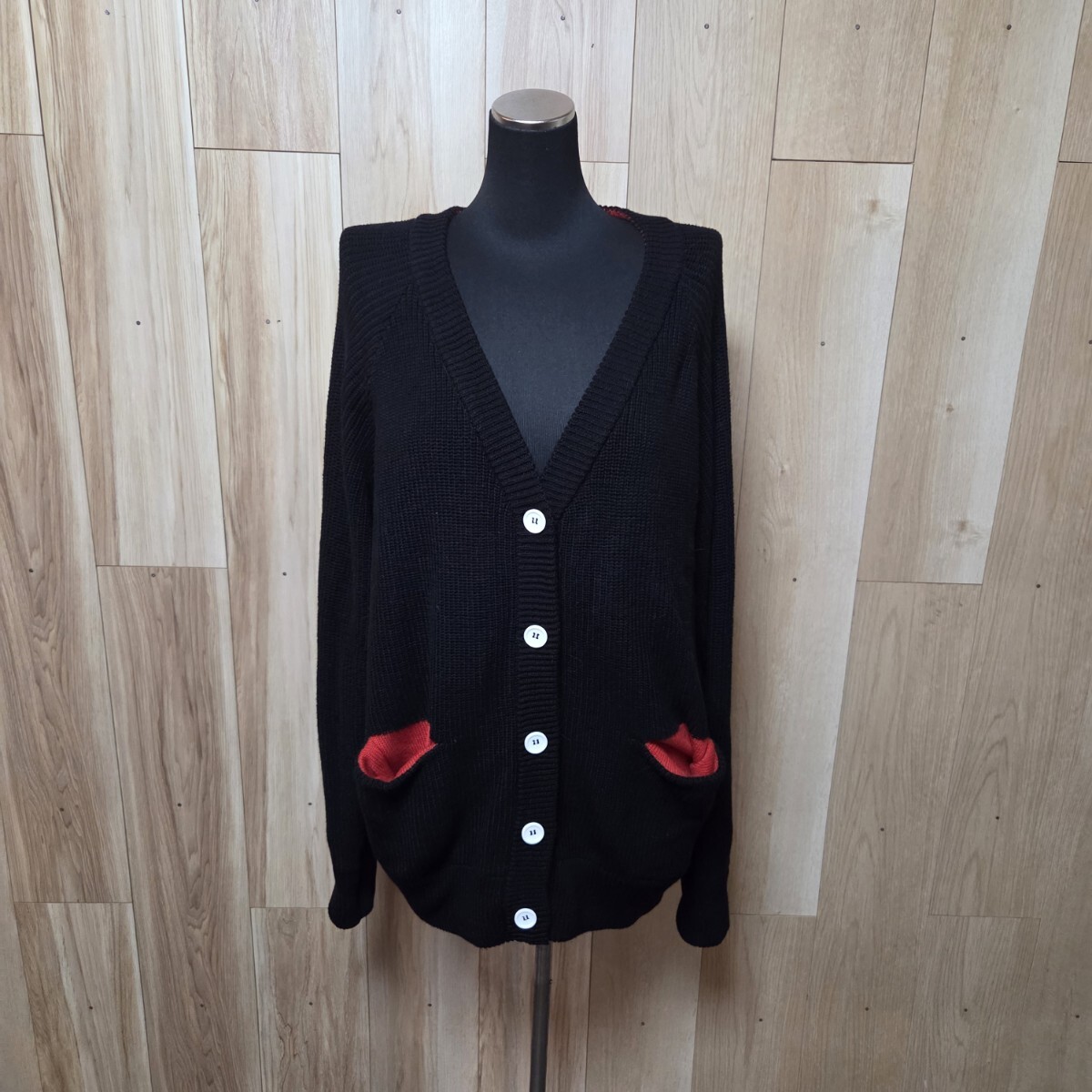 - 超美品 Kawai Okada カワイオカダ★配色ステッチ 大きめカーディガン★QVC ブラック×レッド ニットカーディガン