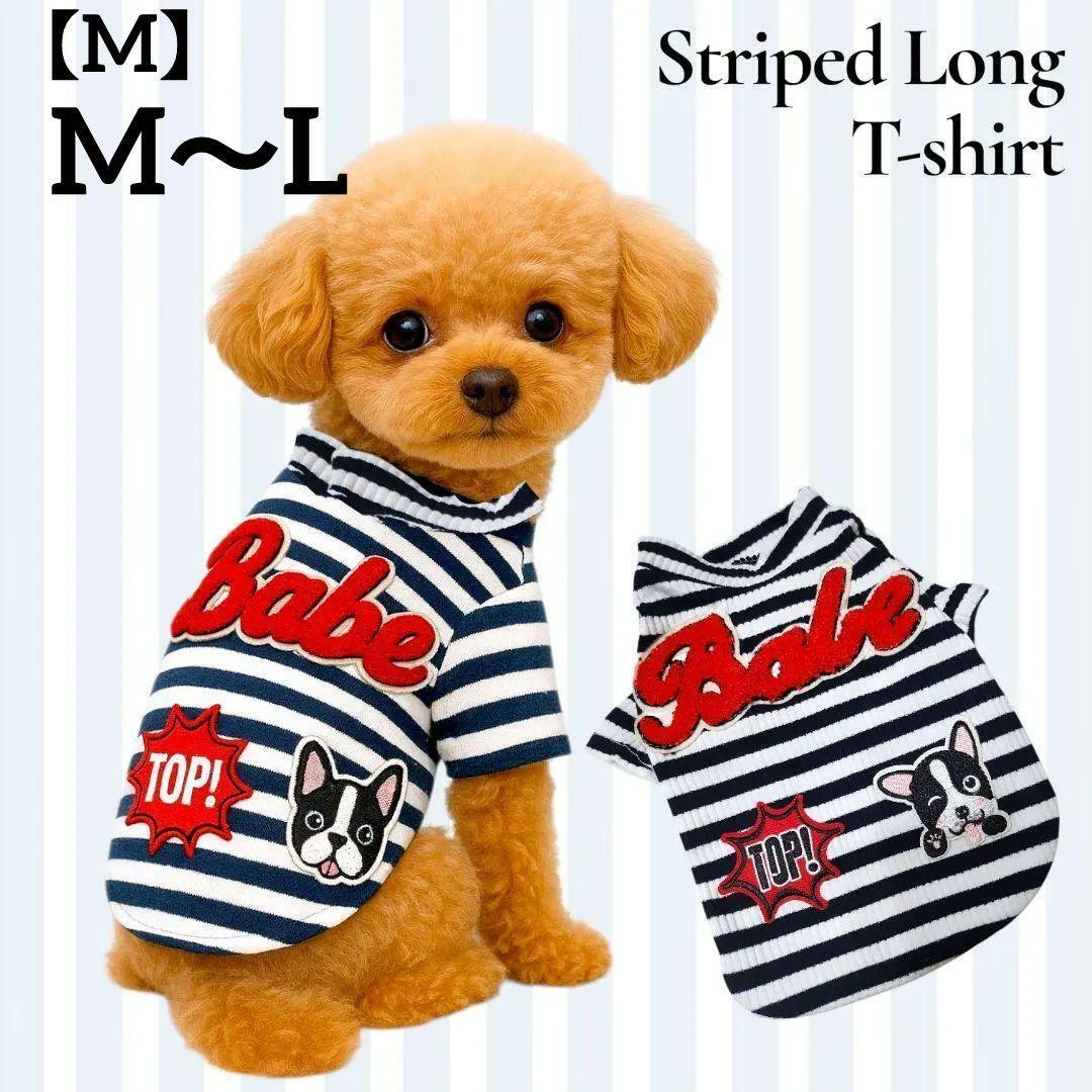 - 【新品】【M】~L程 犬服 可愛い ボーダー 袖付 Tシャツ ワッペン付き 柔らか素材 プードル シーズー フレブル 散歩 旅行 ドッグカフェ
