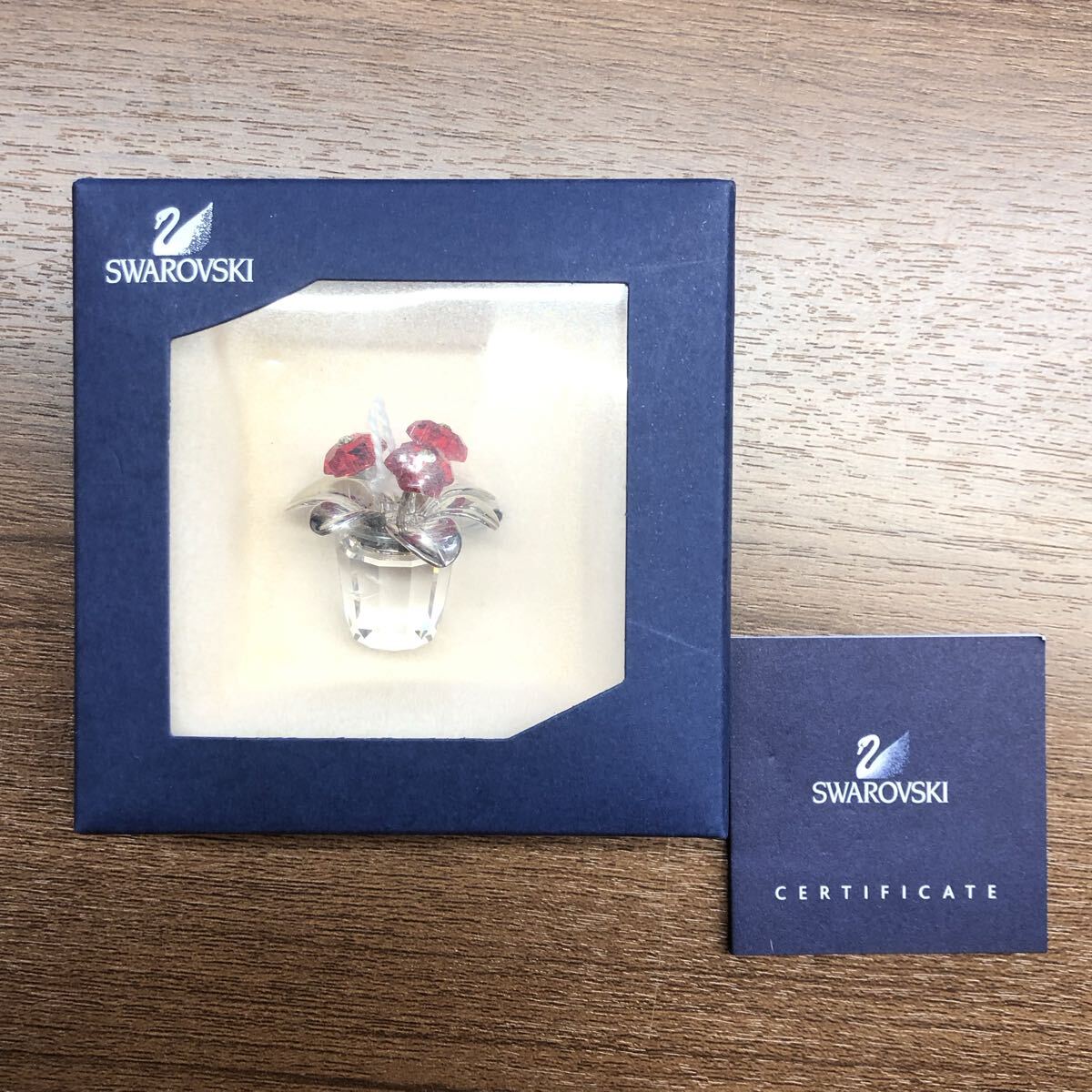 > 【045】 保管品 SWAROVSKI スワロフスキー 置物 オブジェ インテリア クリスタルフラワー ポインセチア 箱付き 高さ約3.3cm 赤い花 鉢植え