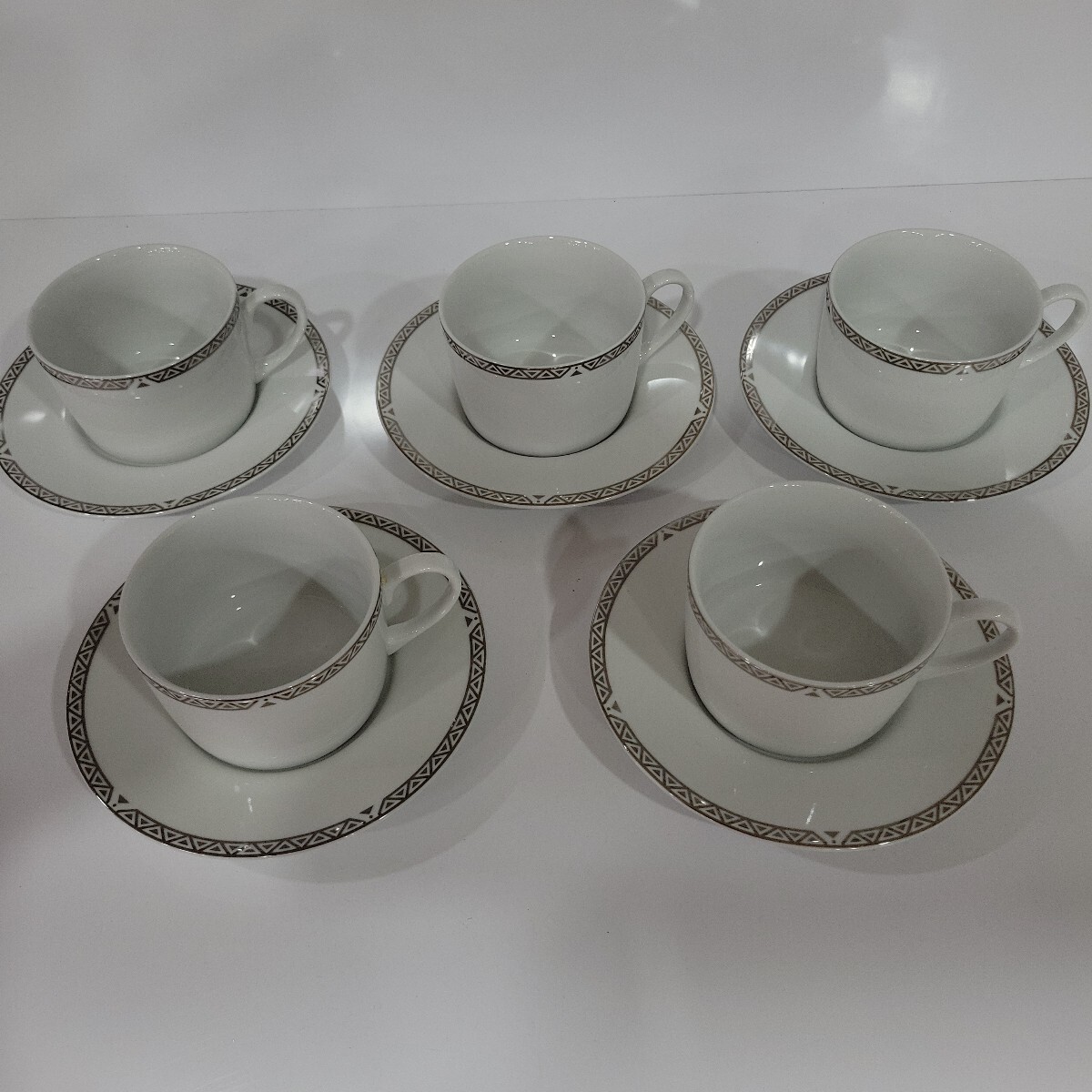 > №9314 中古食器 ロイヤルドルトン プラチナシリーズ カップ&ソーサー 5客セット カップ口径約9㎝ ソーサー直径約15.5㎝