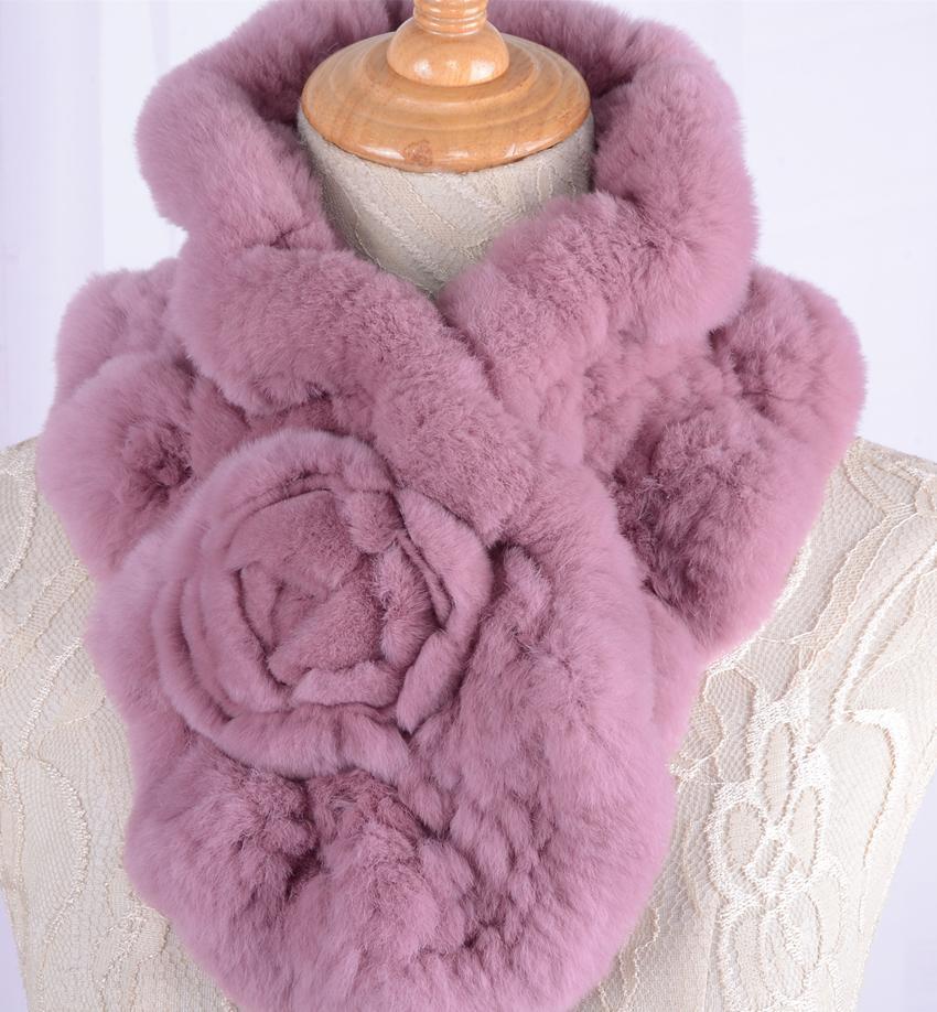 - 新品◆お花デザイン★上品なレッキスの編込み マフラー◆/毛皮 リアルファー