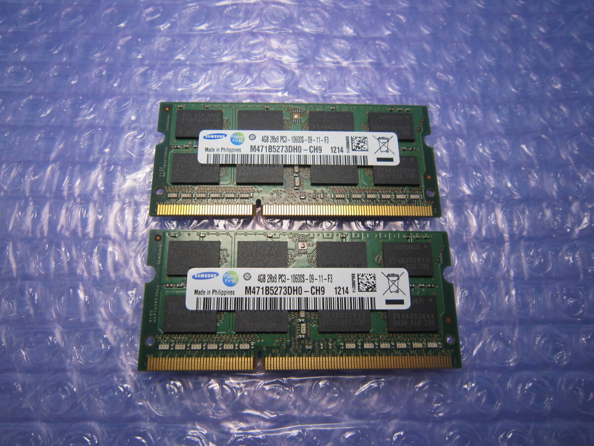 > SAMSUNG ノートパソコン用メモリ 4GB × 2枚(計 8GB) PC3-10600S DDR3-1333 1214 動作確認済 動作保証