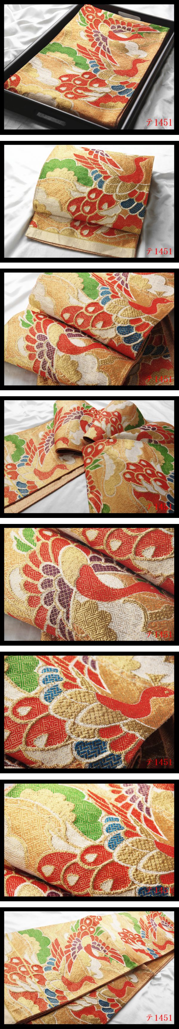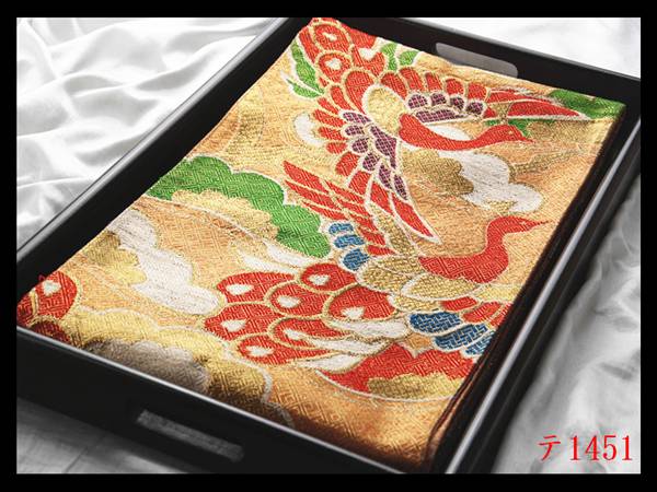 - 蔵【テ1451】西陣美品 振袖可 花鳥古典紋 気品豊かに 正絹純金糸六通高級美術袋帯 ◇検◇簪着物名古屋帯和装小物帯締め