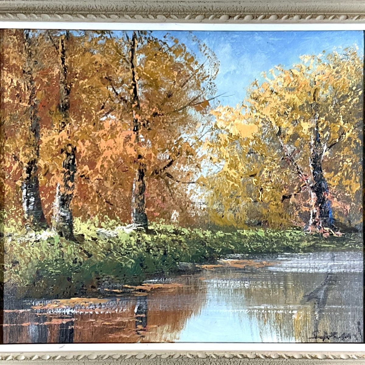 真作■油彩■佐々木賢光■秋の湖畔■10F大型■実力作家・個展多数■額付絵画