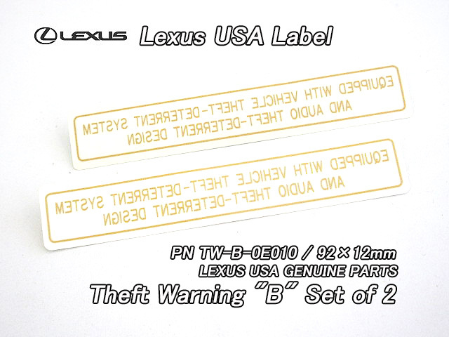 > アルテッツァ/LEXUS/レクサスIS300純正USセキュリティ.ラベル2枚Theft-Warning(B)/USDM北米仕様USAセダン.ワゴン共通SECURITYステッカー