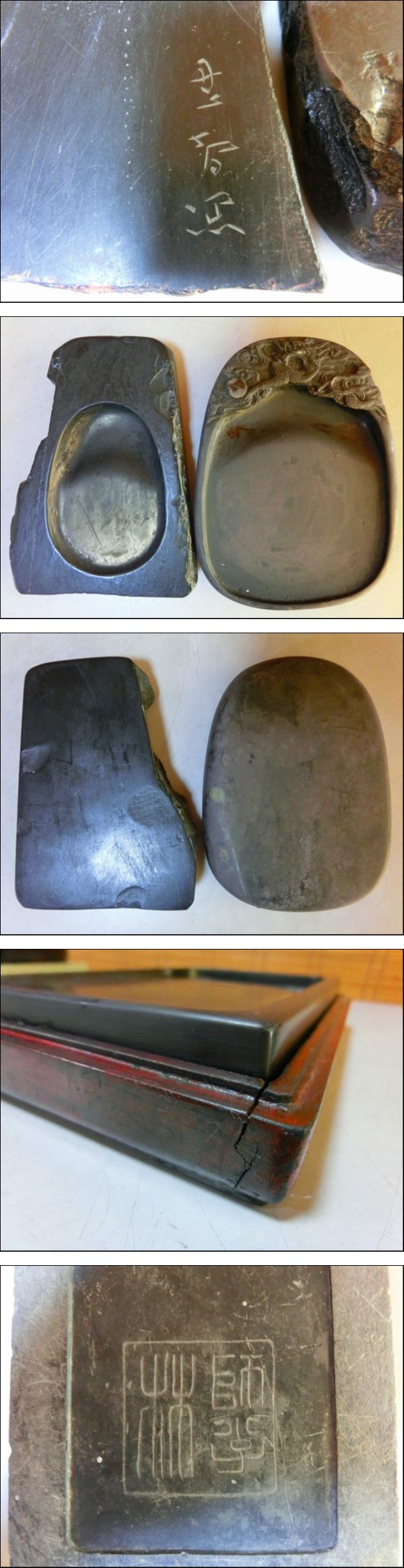 - 7DまS 硯 ケース付 端州 那智黒 在銘 時代物 書道具 すずり まとめて 検)中国古玩