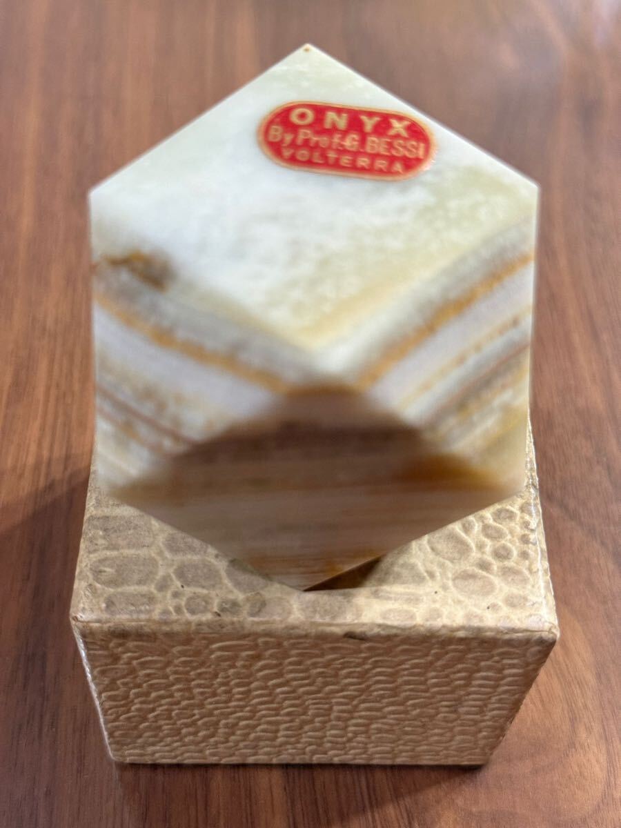 > イタリア製 オニキス 六角形 ペーパーウェイト Prof. G. Bessi VOLTERRA 箱付き