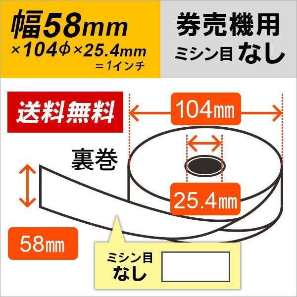 - 送料無料 マミヤ・オーピー VMT-600シリーズ ( VMT-600 VMT-600SE VMT-601S VMT-601SE ) 対応 発券機ロール紙 裏巻 紙厚105μ 10巻×3箱