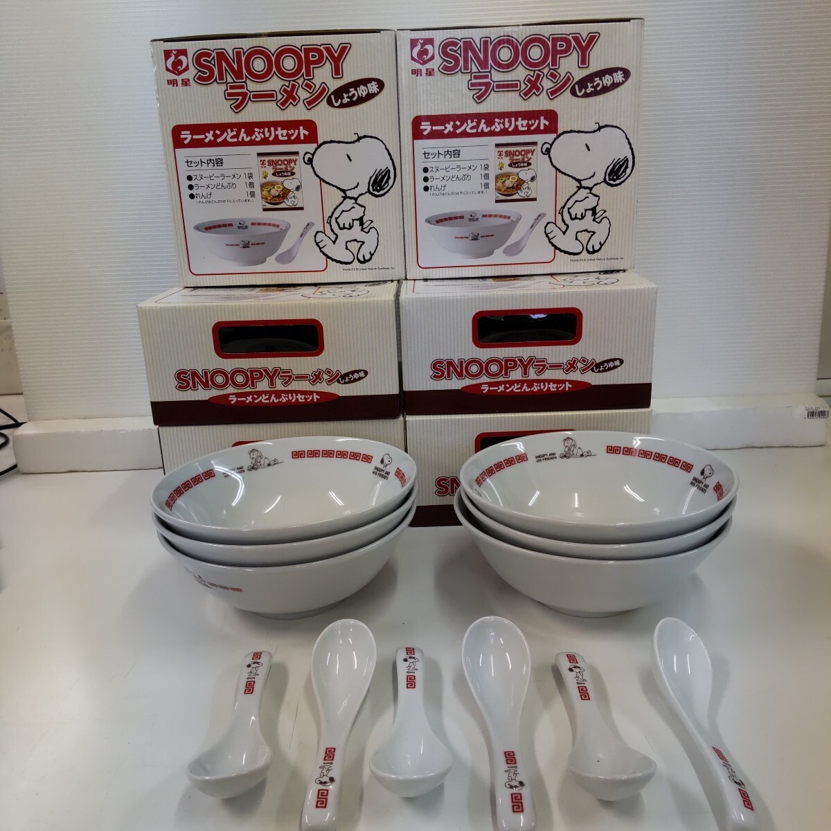 - s578 明星食品 スヌーピーラーメン どんぶりセット れんげ付 SNOOPY 陶器 ラーメンどんぶり 6個 食器 ラーメンなし ラーメン皿 ラーメン鉢