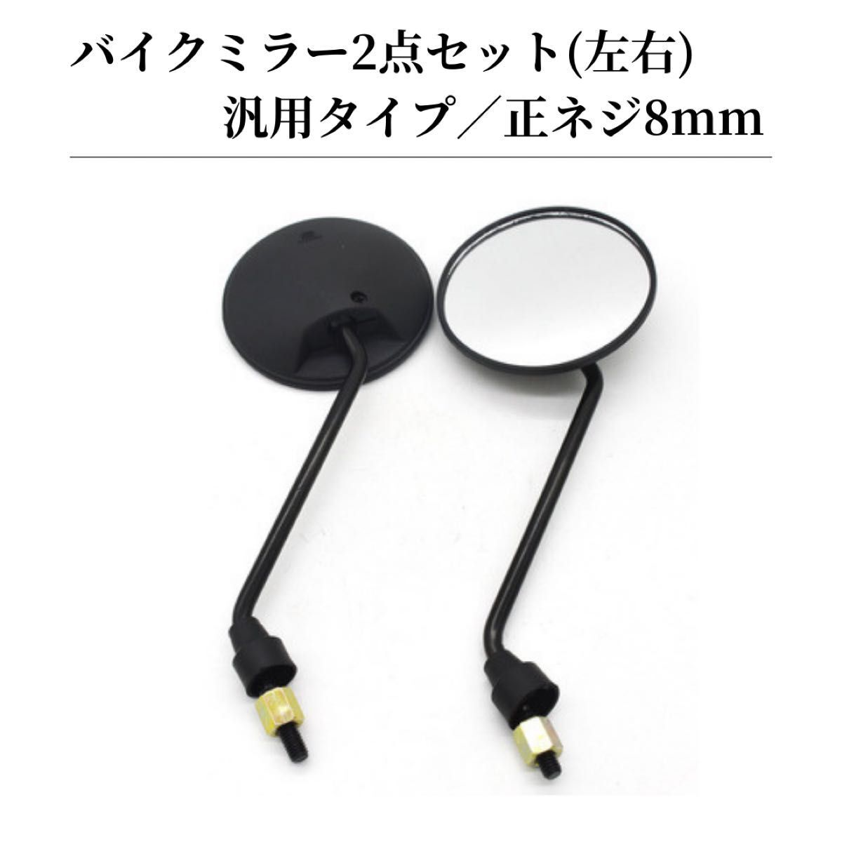 - バイクミラー 丸型 ラウンド 8mm 正ネジ 汎用 ミラー バイク スクーター レトロ感 シンプル ブラック