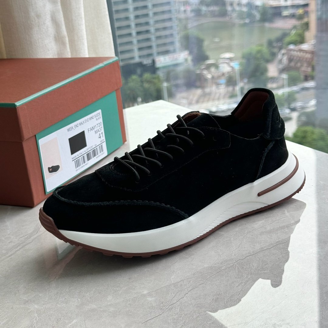 > ブラック26.5cm【送料無料】Loro Pianaロロピアーナメンズ スエード ランニングシューズ, レースアップ カジュアル スニーカー, 軽量