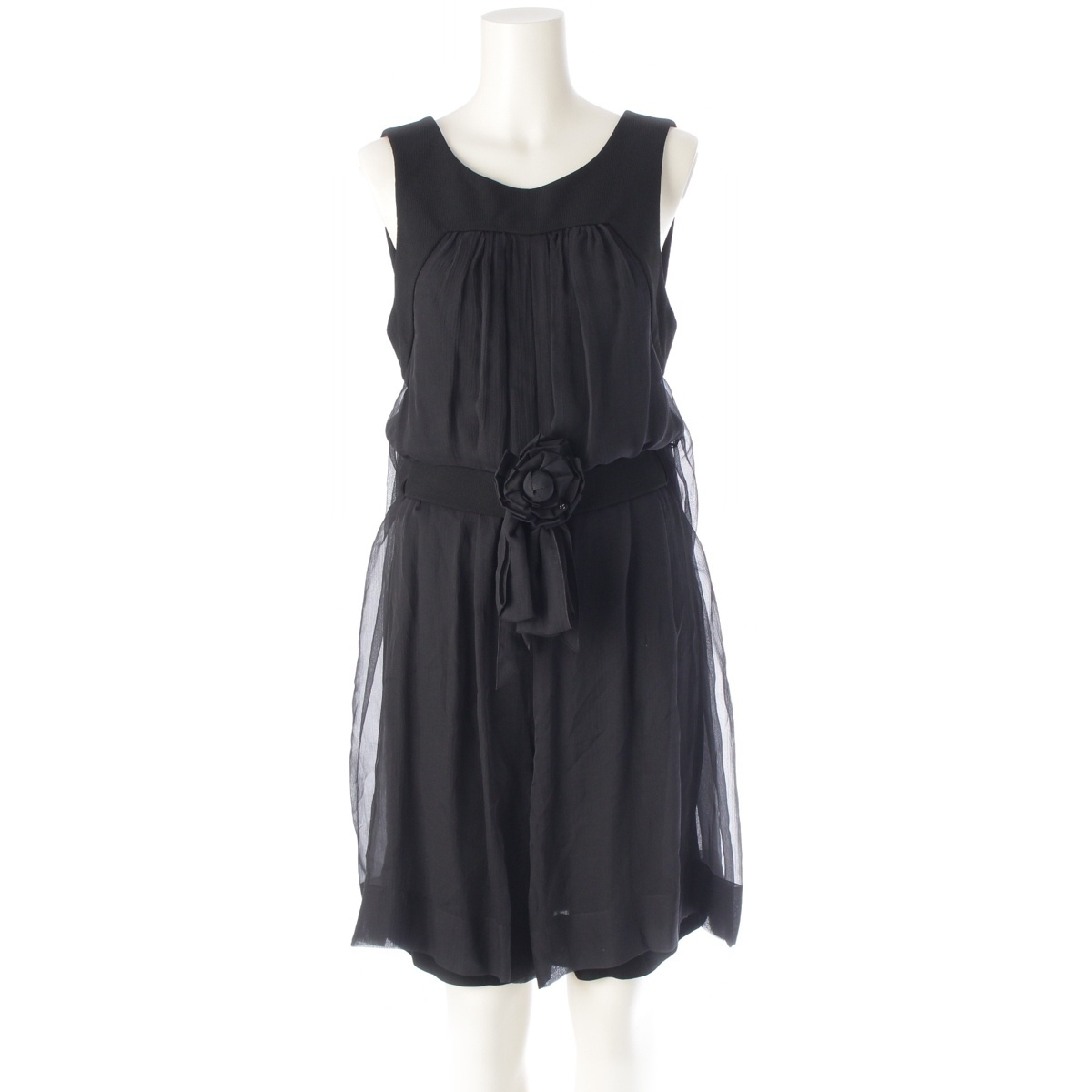 - シャネル シルク ココマーク カメリア リボン キャミソール ワンピース P45488 ブラック 36【中古】
