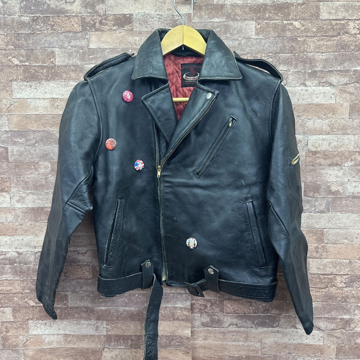 - 古着屋購入 本革 ダブルライダース ダブルライダースジャケット S 相当 ブラック レザージャケット