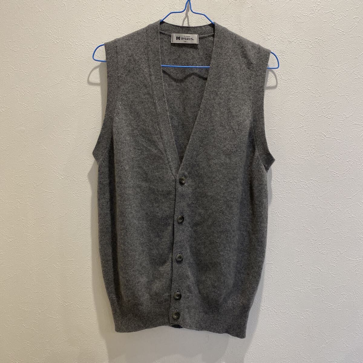 - カシミヤ100% ニットベスト セーター Vネック グレー M す94