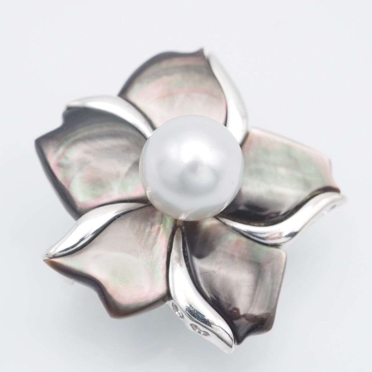 - H015 白蝶真珠 パール シェル 925刻印 ブローチ フラワー デザイン シルバー コサージュ 6月誕生石