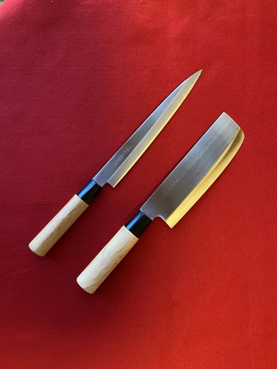 > ☆関の包丁2本セット・刺身+菜切・濃州正宗作・柄部天然木(白木)