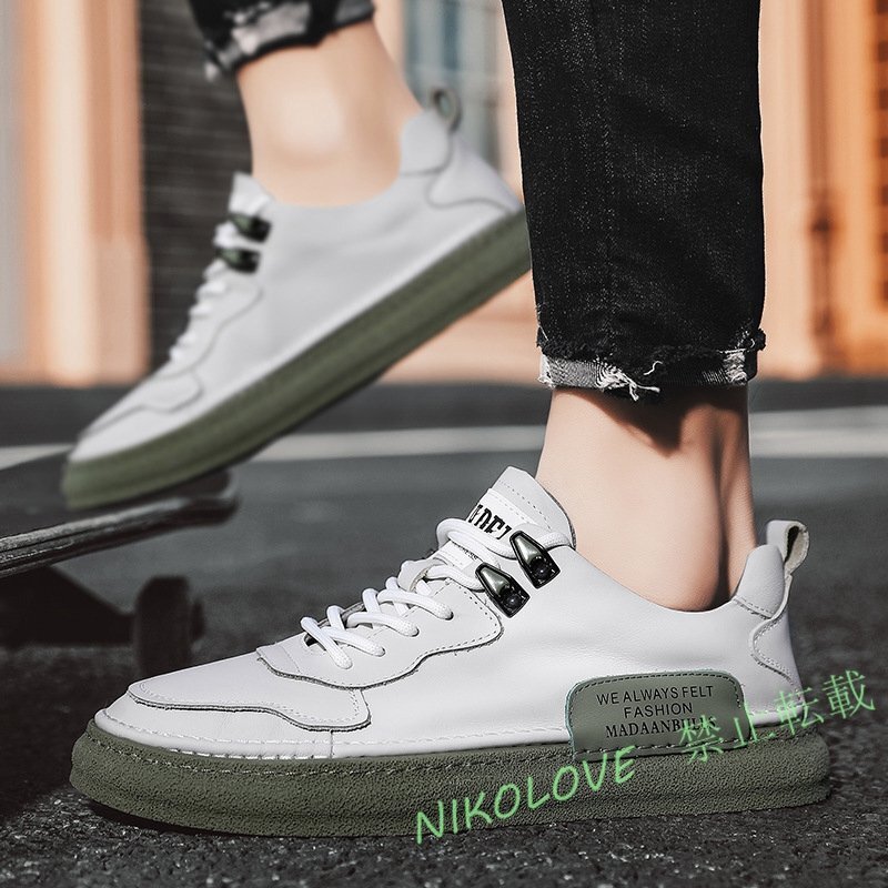 > ☆新品高級品 スニーカー PUレザーシューズ メンズ 白靴 男女兼用 ウォーキン グシューズ 柔らかトレンド 通気性 緑系 24.5~27cm