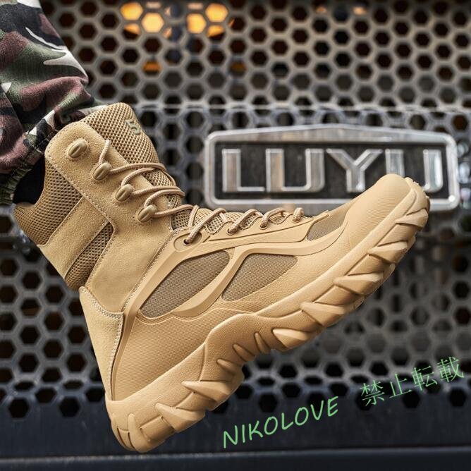 > ☆新品ミリタリーブーツ メンズ タクティカルブーツ デザートブーツ アウトドア 作業靴 防滑 耐磨耗 登山靴 24.5cm~29cm カーキ