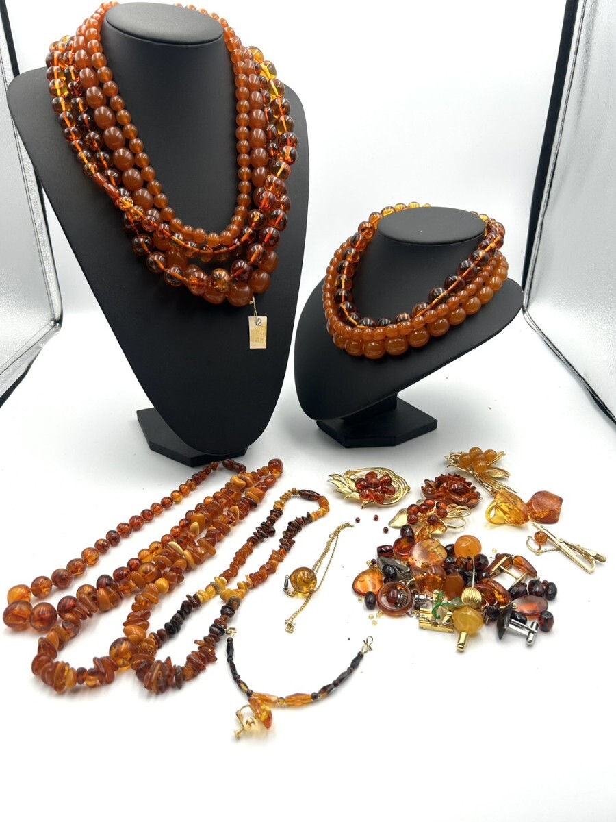 - 1円スタート コハク 琥珀 アクセサリー まとめ イヤリング ネックレス ペンダントトップ 裸石 約600g UI1022-1