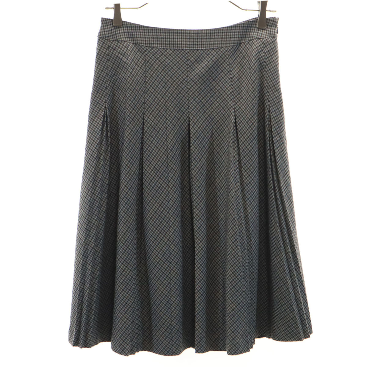 - Aquascutum アクアスキュータム 日本製 ウールブレンド グレンチェック柄 ミディ丈 プリーツスカート グレー系 レディース