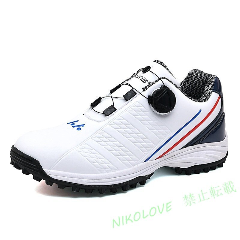 - ☆新品ゴルフシューズ メンズ ダイヤル式 4E 幅広い 男女兼用フィット感 軽量 運動靴 スポーツシューズ 防水 防滑 耐磨 弾力性 白*赤