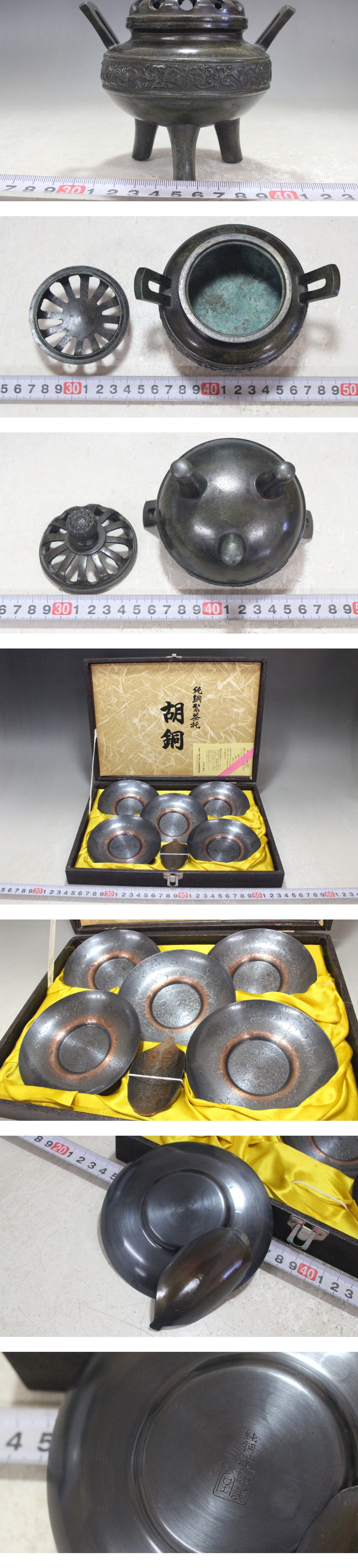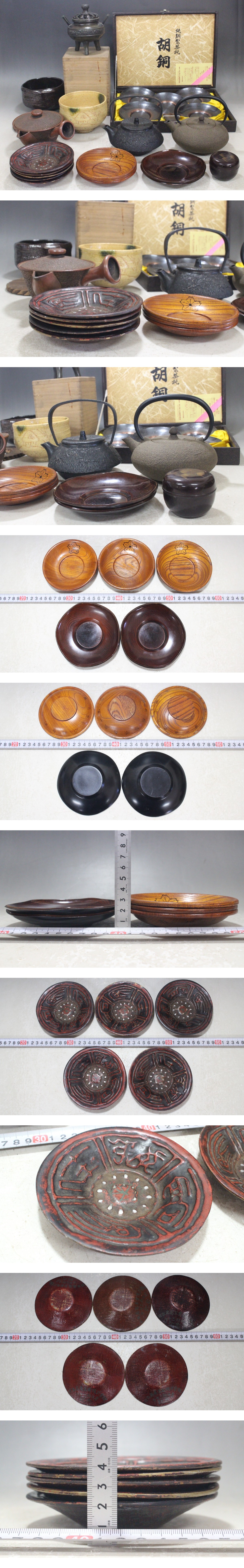 - 茶道具 まとめて 茶托 鉄急須 陶器急須 棗 茶碗 香炉 時代物 茶道 ツ35