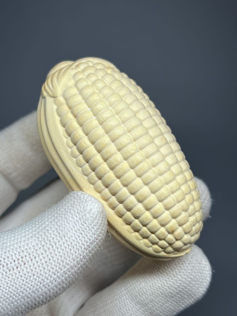 - 黄楊木製 細工彫 トウモロコシ 木製 飾り物
