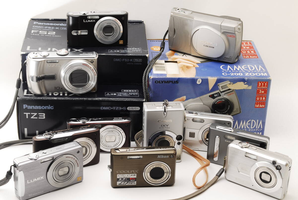 - 【ジャンク】コンパクトデジタルカメラ11個まとめ Canon Nikon Panasonic CASIO IXY COOLPIX LUMIX EXILIM コンデジセット ★稼働品あり★