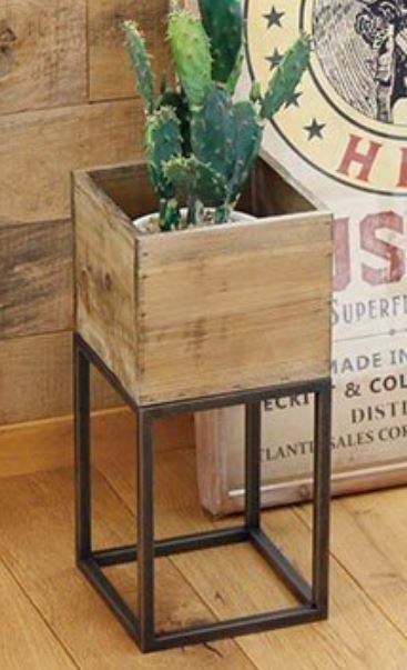 アンティーク風なアイアンにナチュラルなプランターボックスが乗っています。