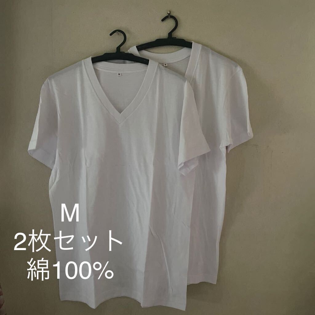 > 2枚組 M Vネック 綿100% 白 ホワイト V首 半袖 Tシャツ アンダーシャツ 男性 紳士 下着 メンズ インナー シャツ 半袖シャツ 定番♪