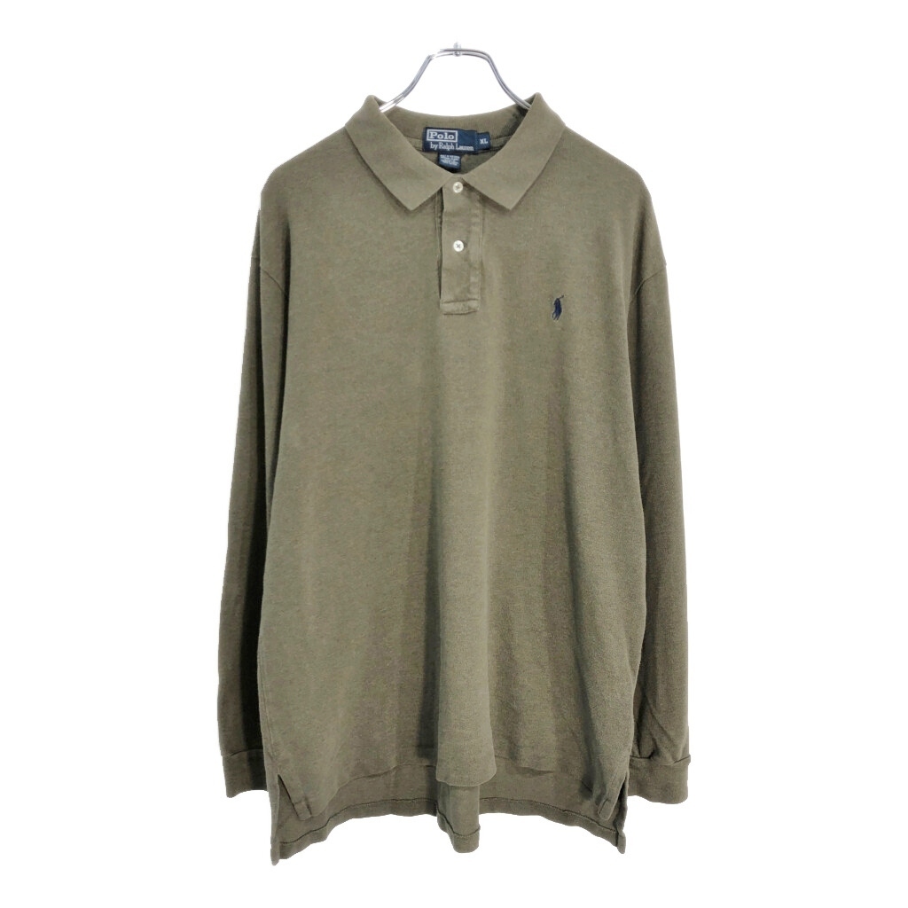 - 90年代 Polo by Ralph Lauren ポロ ラルフローレン 長袖ポロシャツ カーキ(メンズ XL)中古 古着 V6445