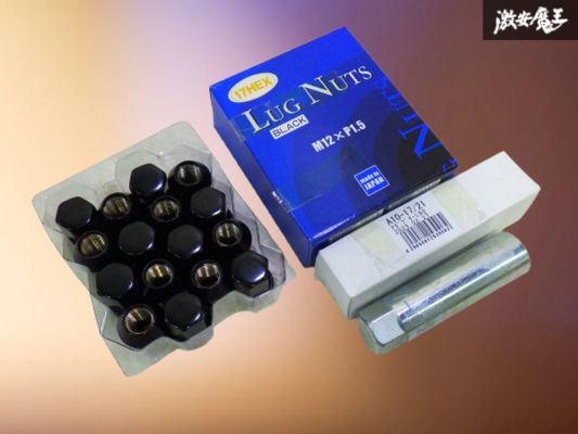 > 【未使用】 ワーク 汎用 ラグナット テーパー座面 ホイール ナット 16個 セット 黒色 M12 P1.5 即納 在庫有 棚