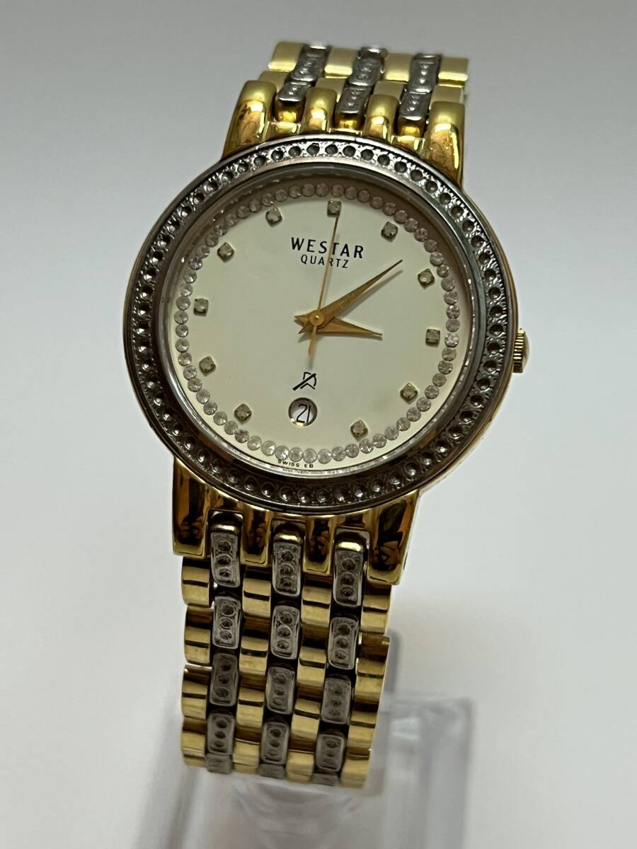 > 動作未確認 WESTAR ウェスター A225192S アナログ クォーツ メンズ 腕時計 ゴールド 18K EP デイトカレンダー メタルベルト