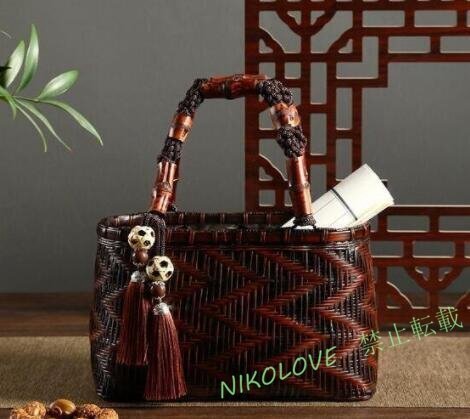 - ☆新品美品自然の良品 バスケット 収納かご おしゃれ竹籠 編み 取っ手 持ち手 手作りトートバスケット 花火着物かご