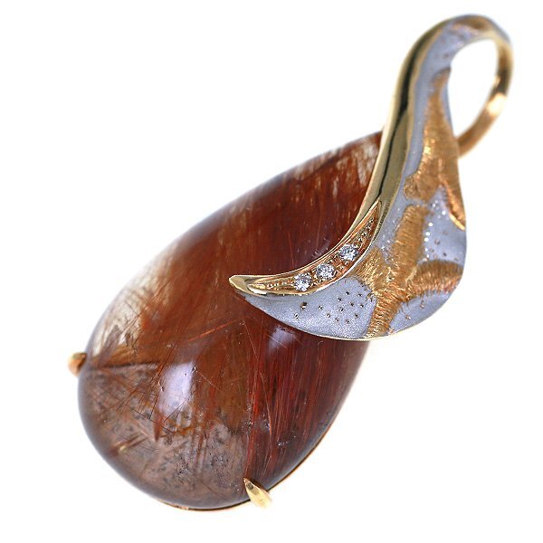 - 【1円スタート】T279 名執左結里 K18 ルチルクオーツ26.36ct D0.03ct ペンダントトップ 日本宝石科学協会ソーティング付き