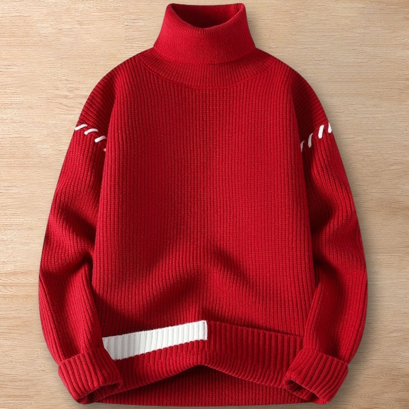 - Y262-L レッド 新品DCKMANY ウール混 セーター タートルネック プルオーバー リブ編み ニット 秋冬 厚手 暖かい 長袖 メンズ トップス