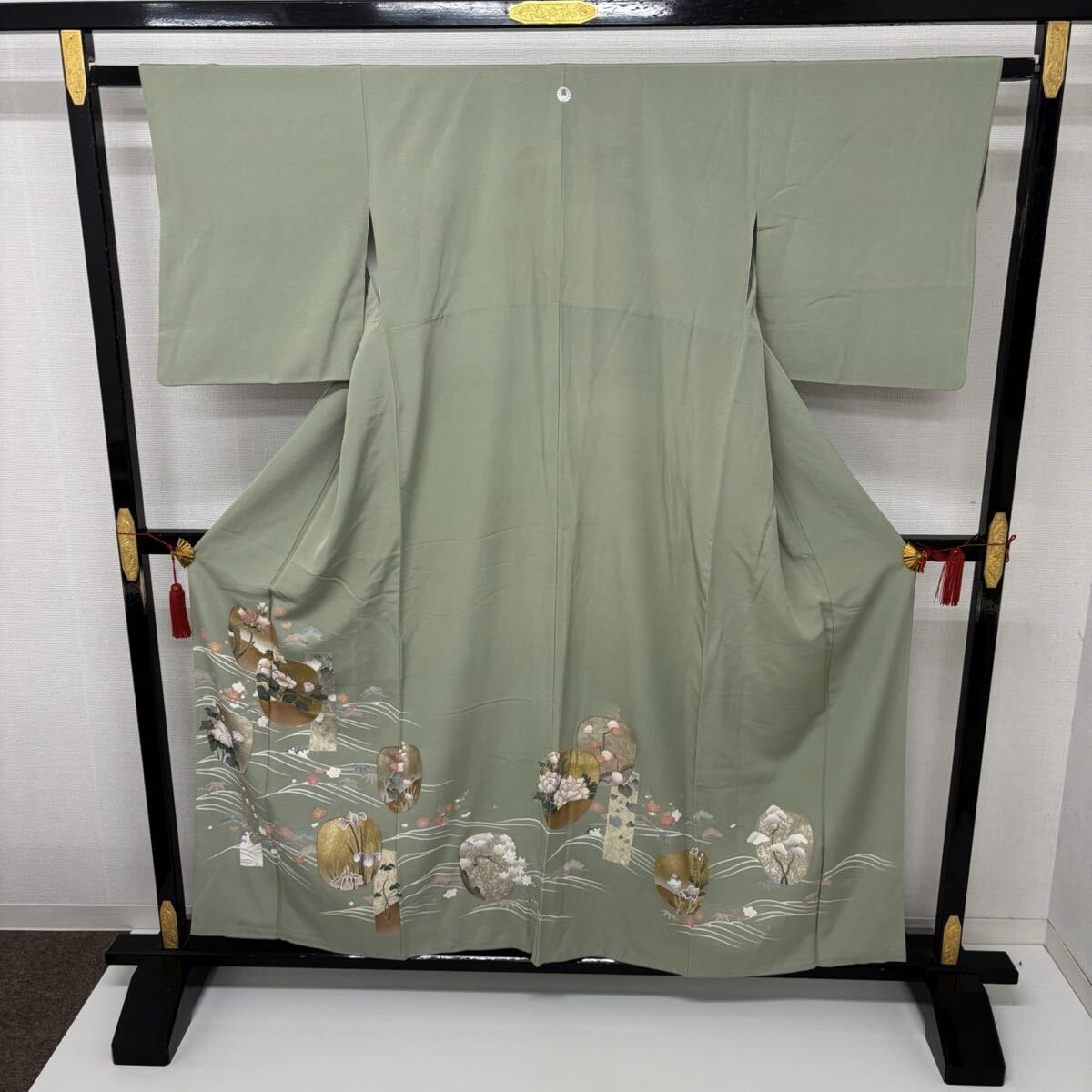 - 色留袖 金彩友禅 箔 上品な加工 一つ紋 着物 正絹 W-5359
