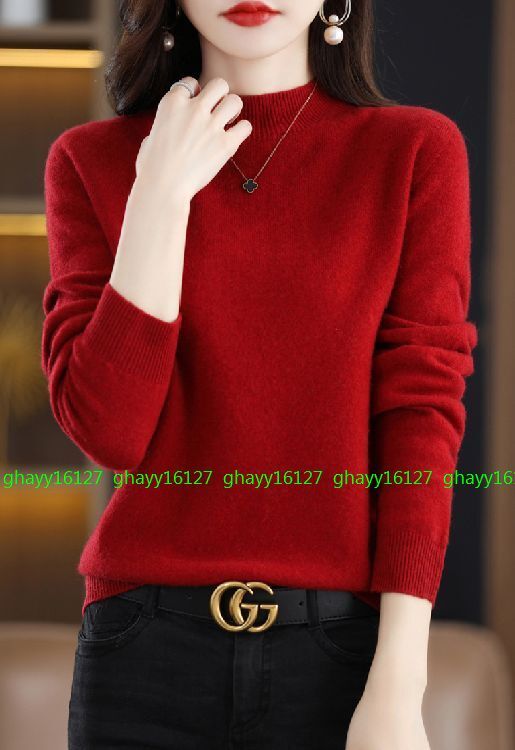 - XL柔らか上質カシミヤ100%★ベーシック&シンプルハイネックニット♪ワインレッドXL